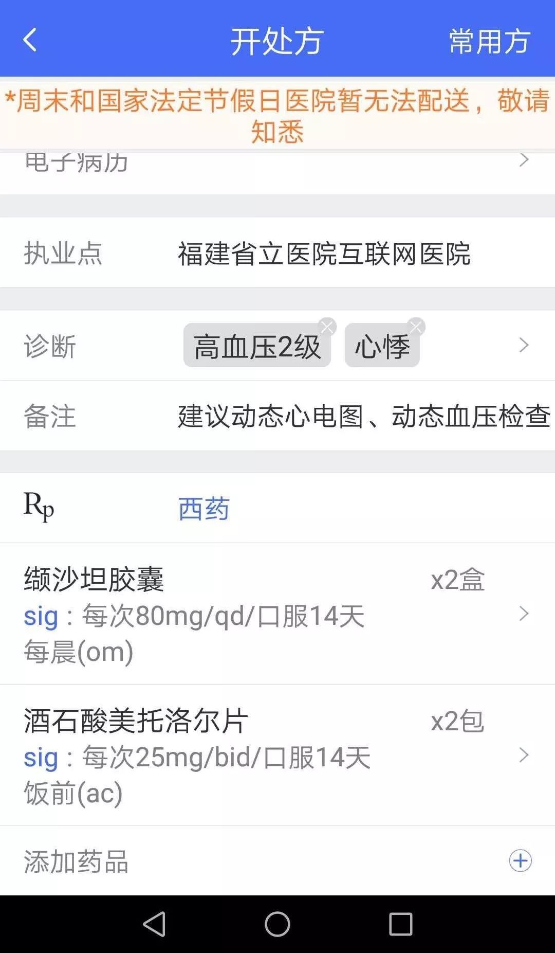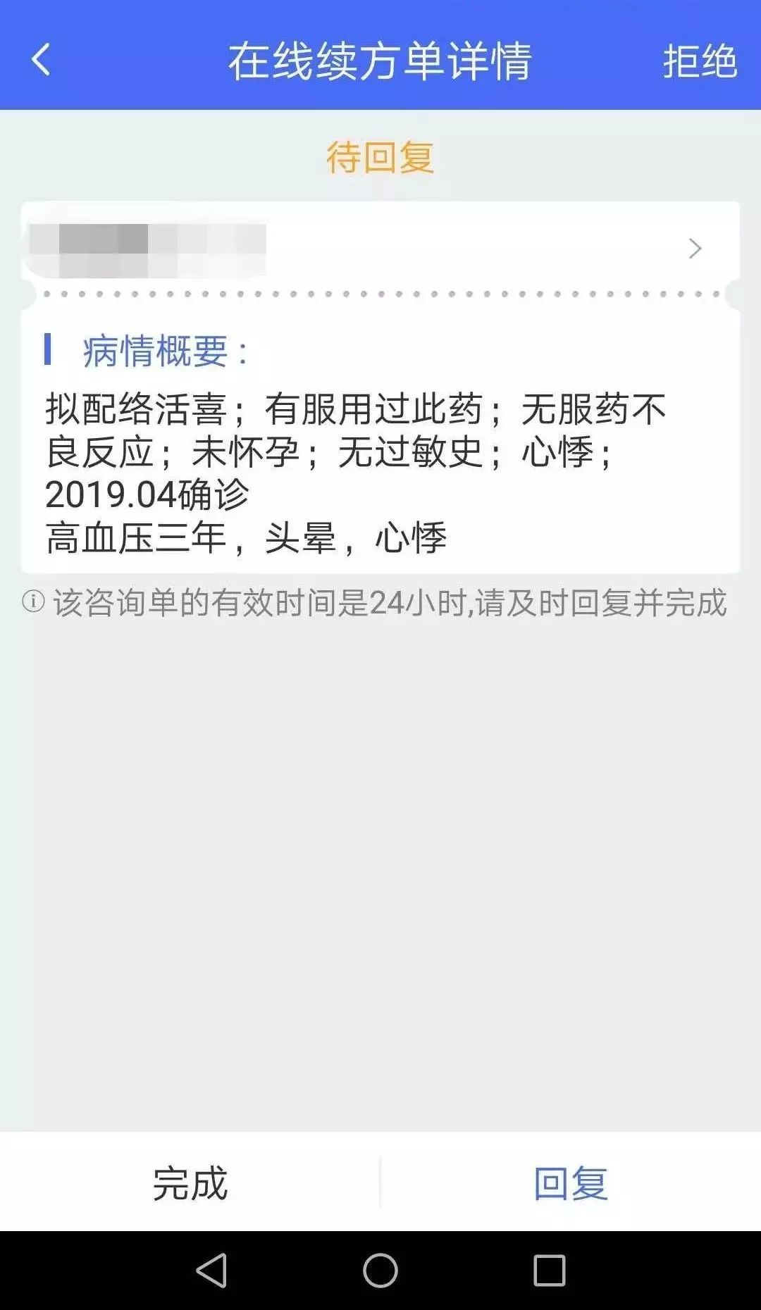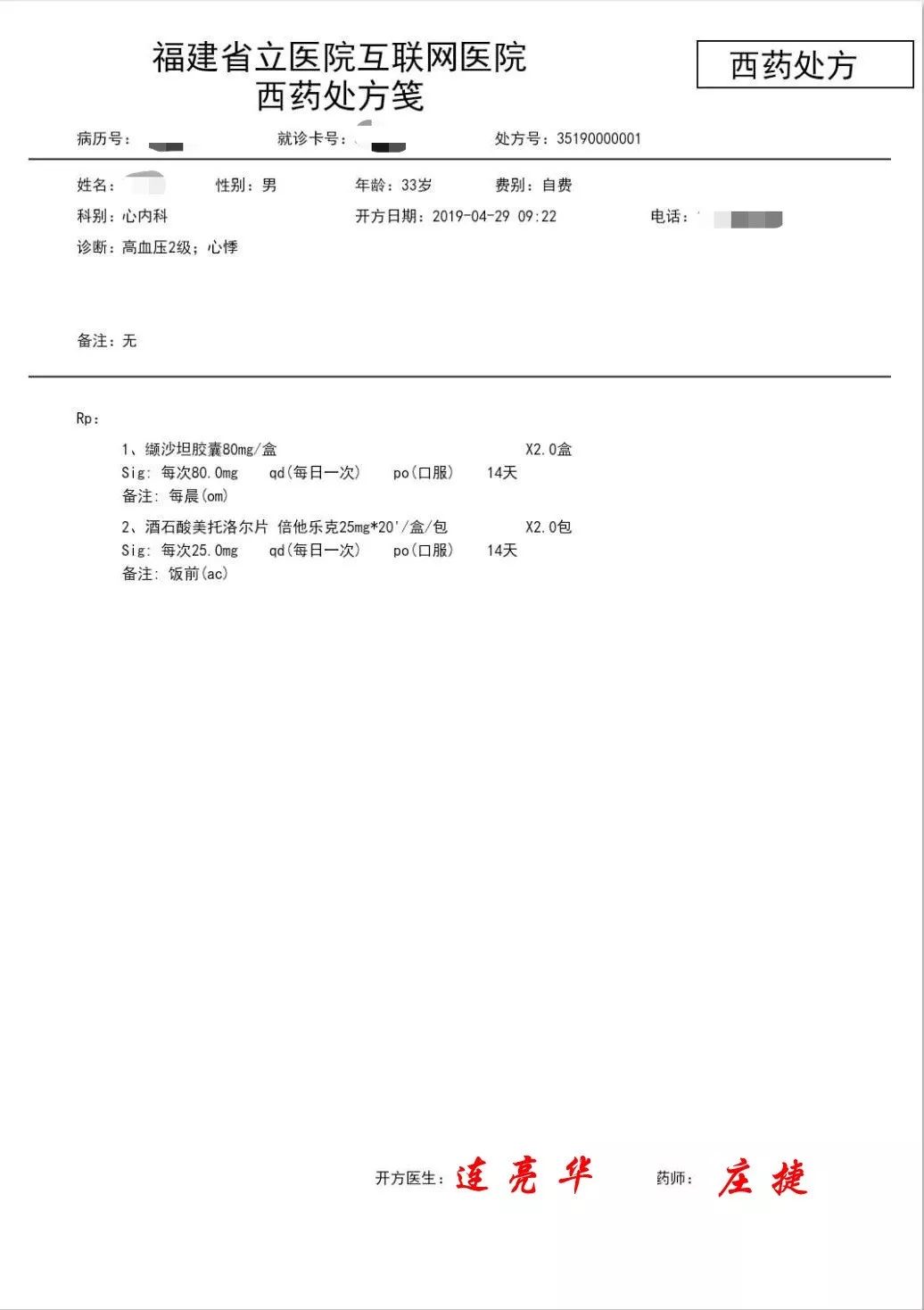 福建省立医院互联网医院上线20几分钟后,首张慢病续方开出。开方的连亮华副主任医师介绍,续方的患者张某是位高血压患者,从确诊到现在已有2年多,经过规范治疗,目前血压控制较为理想,患者每次复诊基本都是复方,之前每月至少要往返医院两次。上一次复诊时,连医生告诉他互联网医院即将上线,慢病可以在线复方,今天张某便实实在在体验了互联网医院的便捷。
