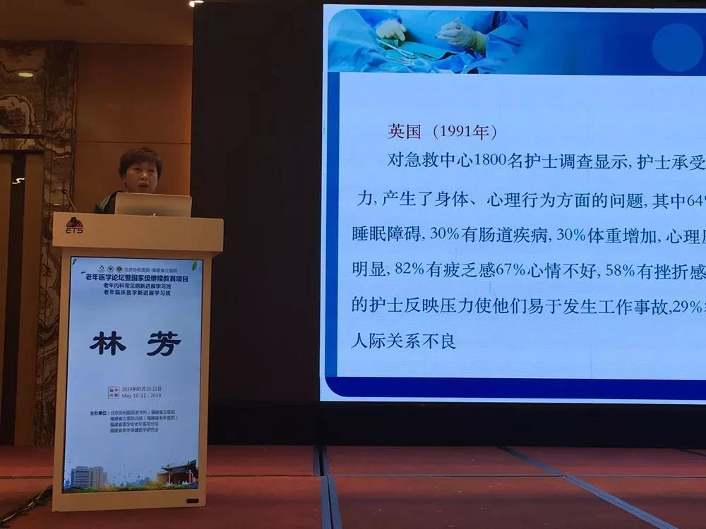 福建省福能集团总医院副院长、福建省心理卫生协会理事长林芳教授的医务人员自我心理减压课程风趣幽默,笑中带泪体会个中辛苦,只有关注医务人员自身心理健康,才能更好地服务病人。