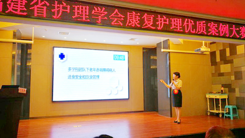 6月26日,由福建省护理学会康复护理专业委员会组织的“康复护理优质案例”比赛在福州拉开帷幕,全省17支队伍参赛。经过激烈角逐,我院干部特诊二科郑晓娜主管护师以《多学科团队下吞咽障碍病人进食安全和饮食管理》夺得大赛一等奖。