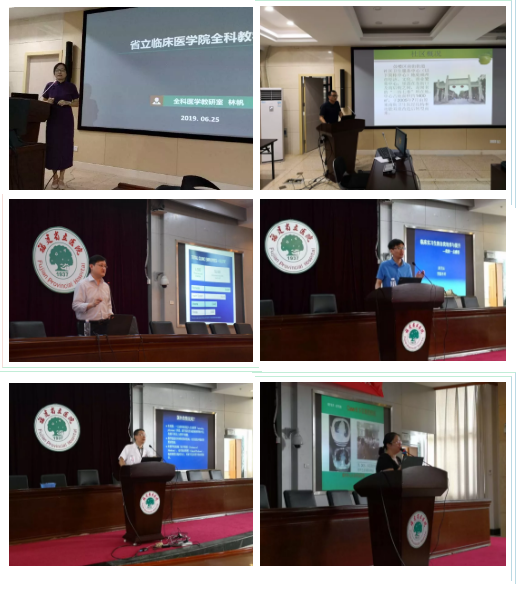 全科医学教研室林帆主任医师、南街社区卫生服务中心傅德樟医生介绍全科医学社区实习的注意事项;妇科副主任孙阳博士通过自己在美国梅奥医学中心学习经历带来的启迪,教导同学们对即将到来的实习阶段应当有所规划,充实而有意义地度过实习生活;胃肠外科副主任薛芳沁博士讲授“临床实习生如何自我培养与提升”;内分泌科温俊平教授介绍如何培养自己的科研兴趣和方向;呼吸内科李鸿茹副主任医师分享如何培良好的内科临床思维。