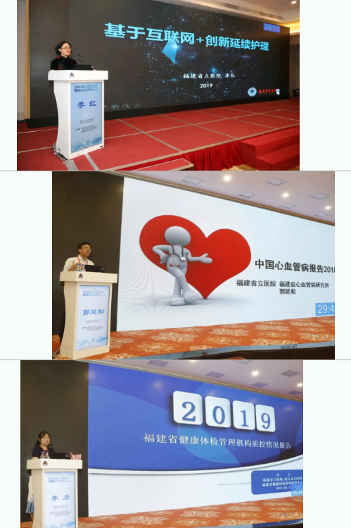 ▲福建省健康体检质控中心主任、福建省立医院李红教授做主题演讲;福建省医学会健康管理分会主任委员、福建省立医院郭延松教授做主题演讲;福建省医学会健康管理学分会副主任委员,福建省立医院李力主持大会开幕式。