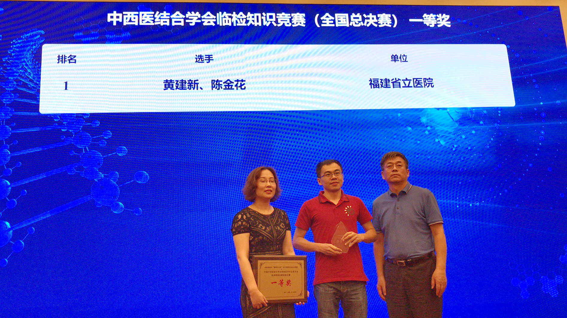 6月27日,由中西医结合学会检验医学专业委员会主办的“慧眼识风险”知识竞赛全国总决赛在成都举行。北京协和医院、复旦大学附属华山医院、上海长征医院等16支从全国各分赛晋级的参赛队伍参加角逐。我院检验科陈金花副主任技师、黄建新主管技师以优异的表现,夺得总决赛一等奖。