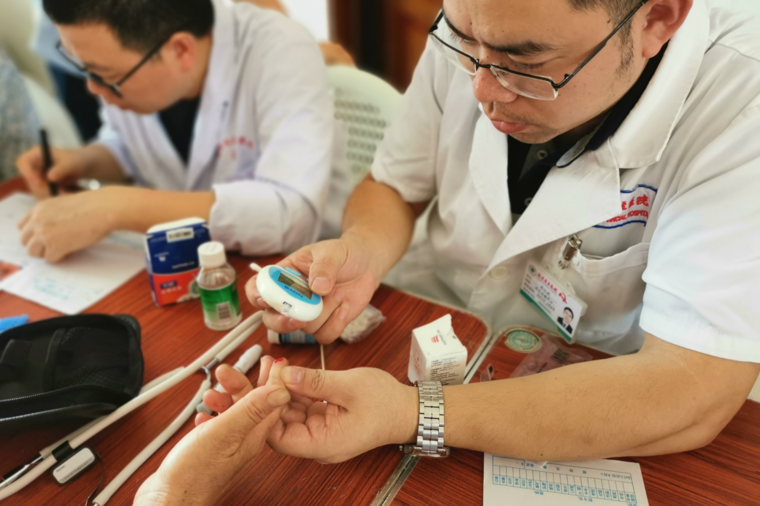 支部书记梁玮主任医师是一名党龄33年的党员。他说,义诊活动包括流行病学调查和内镜筛查,是北京协和医院牵头的国家级消化道肿瘤早诊早治和预防项目的一部分,得到了当地政府的关注和村民的支持。