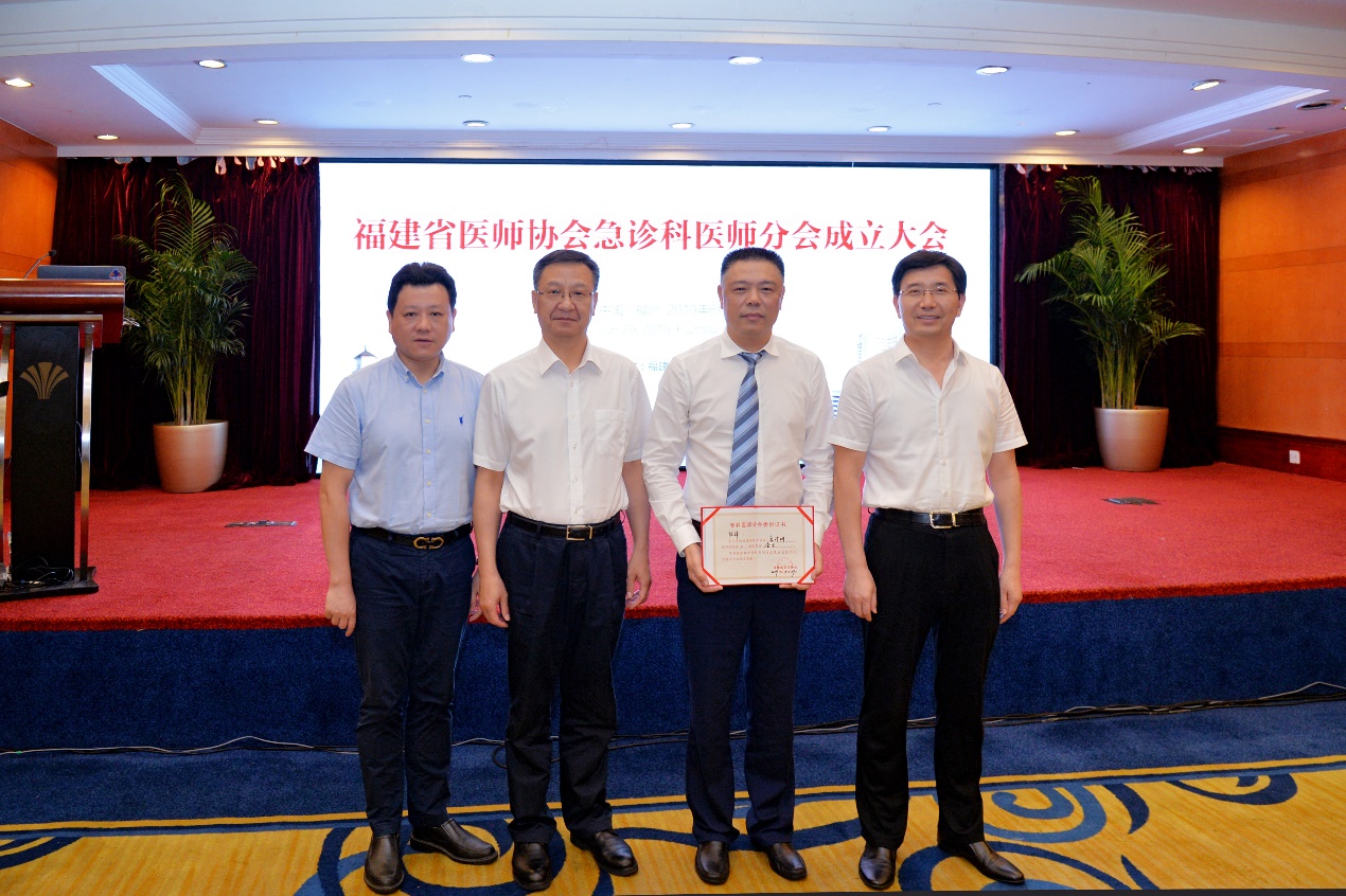 ▲陈锋教授(右二)当选为第一届福建医师协会急诊科医师分会会长