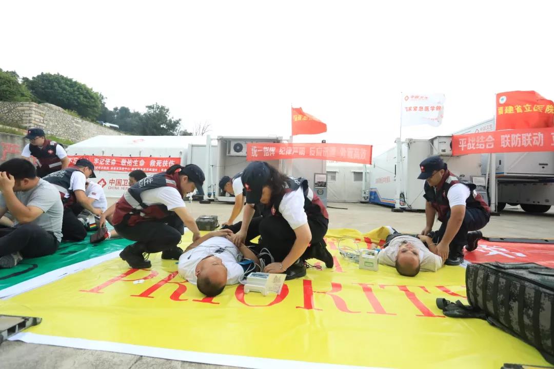作为全省唯一一支国家级紧急医学救援队(福建)承担现场主要紧急医学救援演练任务,与省紧急医学救援莆田队、莆田市秀屿区卫生应急救援队、南日岛卫生院、交通运输部东海救捞局第二救助飞行队、上海金汇通用航空股份有限公司及蓝天救援等应急队伍共同赴灾区展开应急救援。莆田市政协副主席张亦兵,省卫健委应急办主任陈宝贵、调研员熊太茂,莆田市卫健委主任蔡国萍、副主任吴宗权等亲临现场观摩指导。