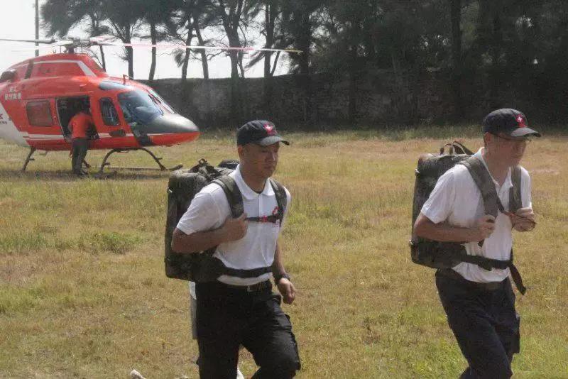 由“东二飞”送来第一名意识不清、病情危重伤员被标为红色伤员,初步诊断为“重症颅脑损伤、出血性休克、肺挫裂伤”,需要紧急手术,莆田队请求国家队神经外科、胸外科、骨科医生共同参与手术,经由直升飞机空中投送增援突发事件现场。