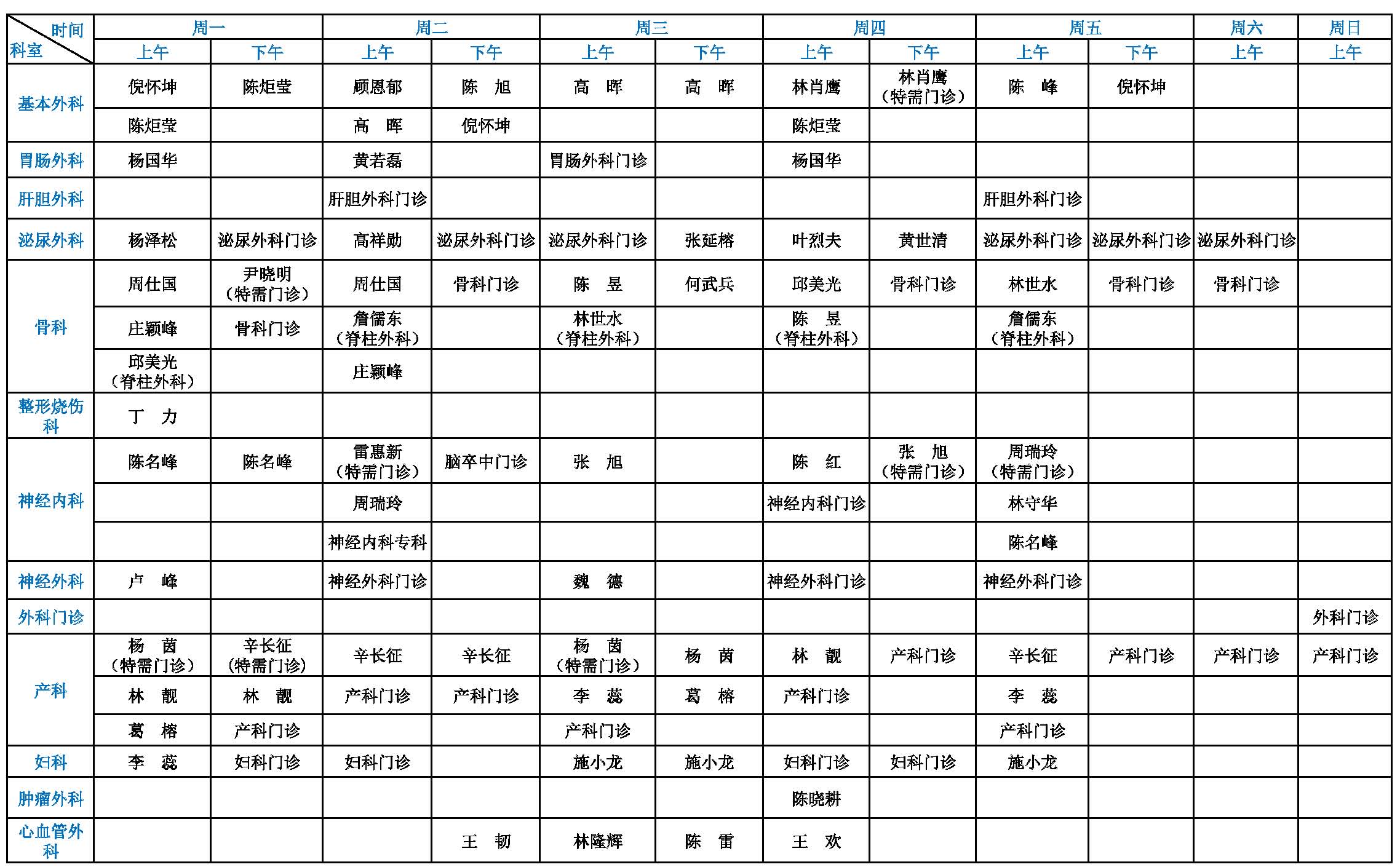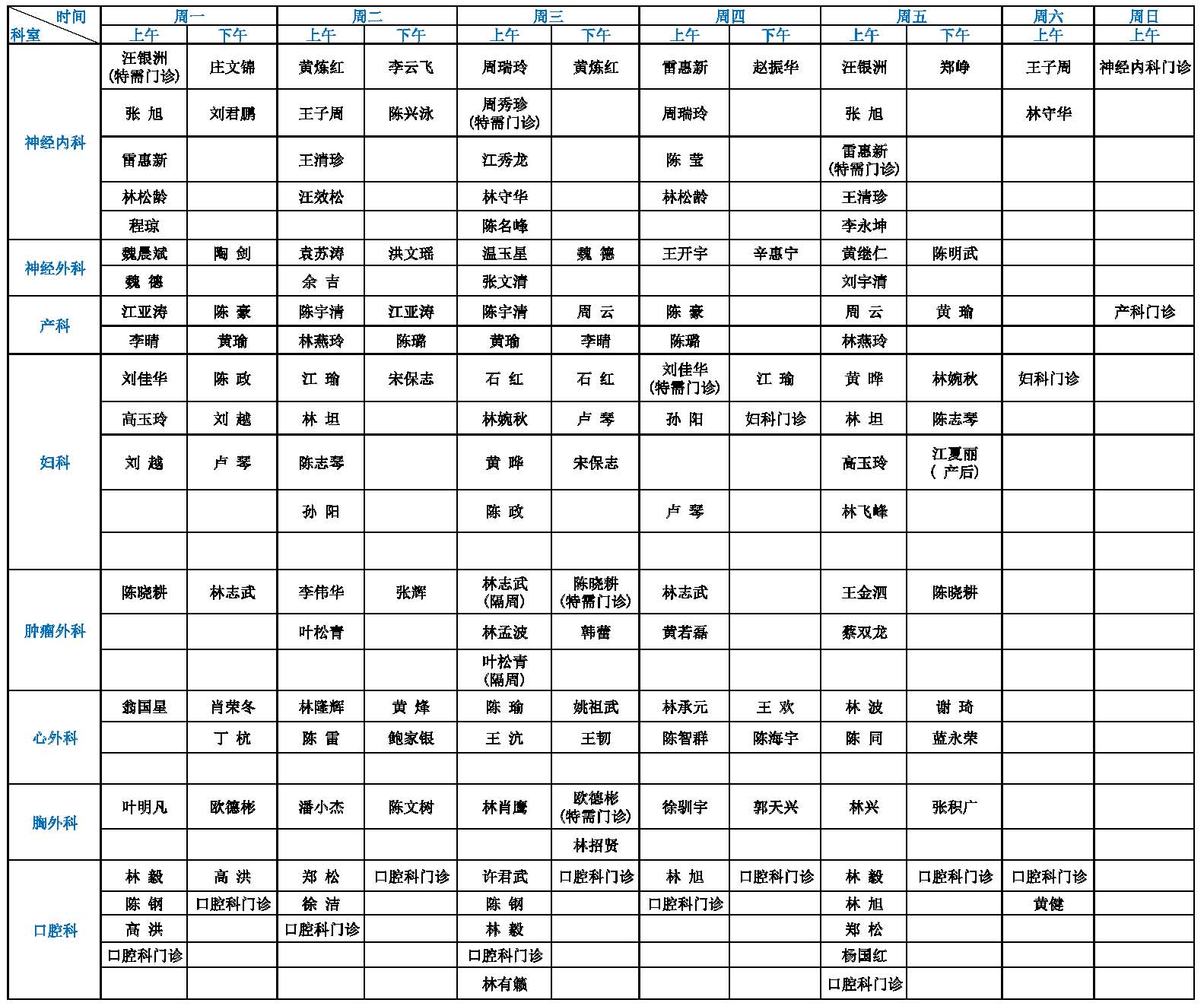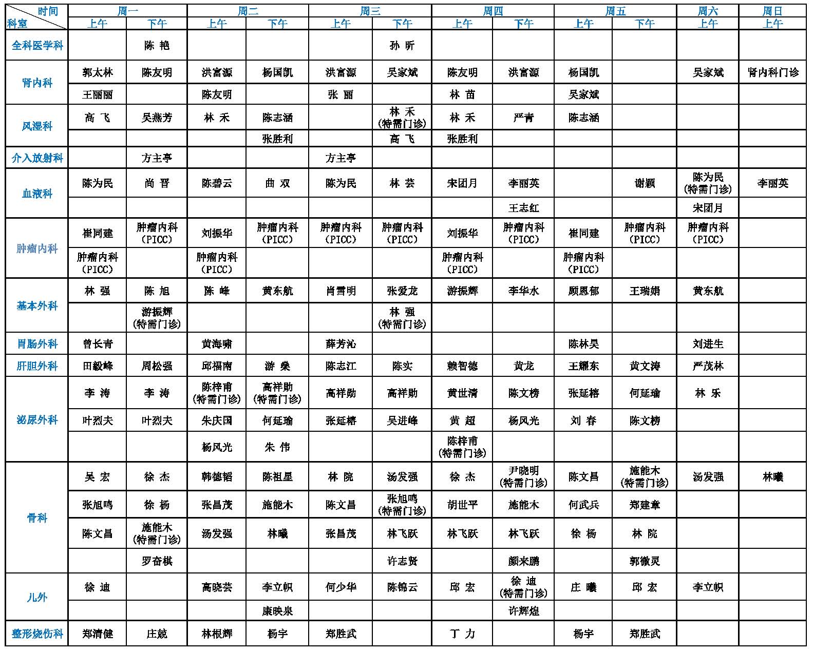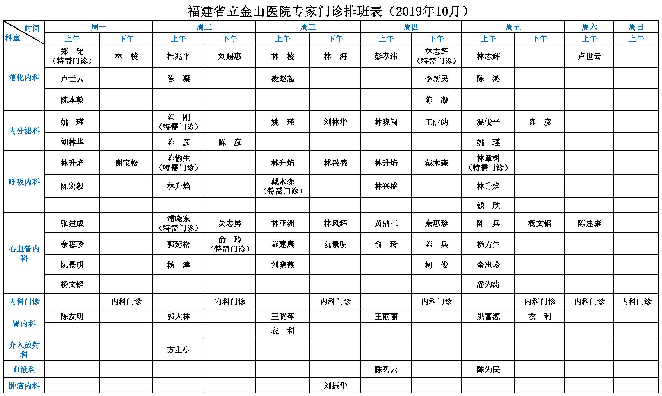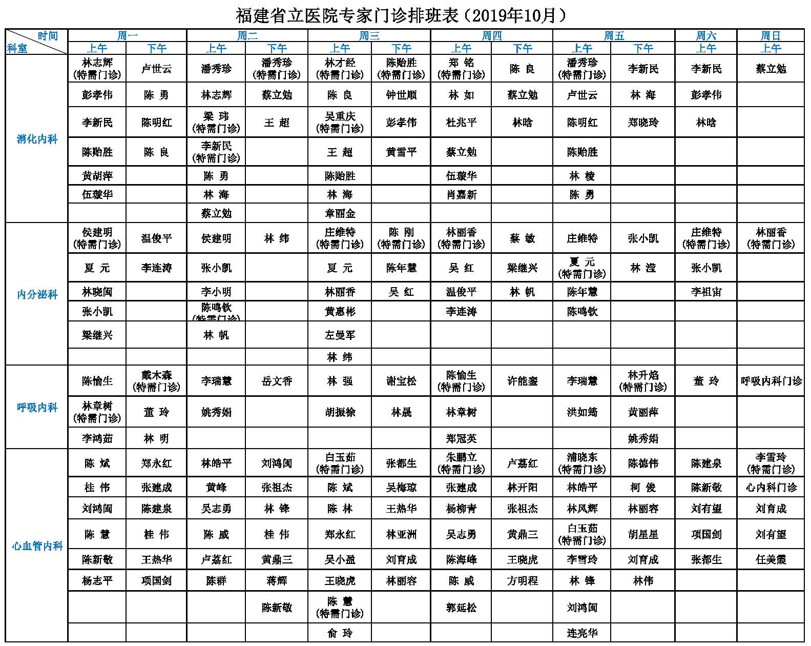 【收藏】福建省立医院、省立金山医院2019年10月专家门诊一览表