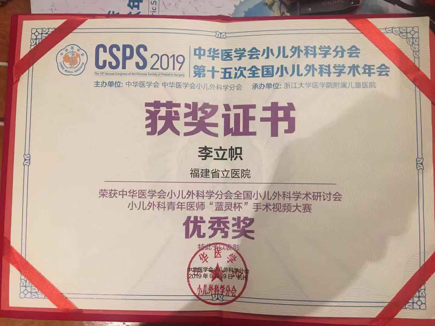 全国小儿外科青年医师手术视频大赛同期举行,共七名医师入围,我院李立帜副主任医师获优秀奖。何少华副主任医师受邀在大会中作《单孔腹腔镜胆总管囊肿切除术25例》学术报告,介绍了近年来我院小儿外科在微创手术方面所取得的进步和成效,得到全国同道的肯定和赞誉。