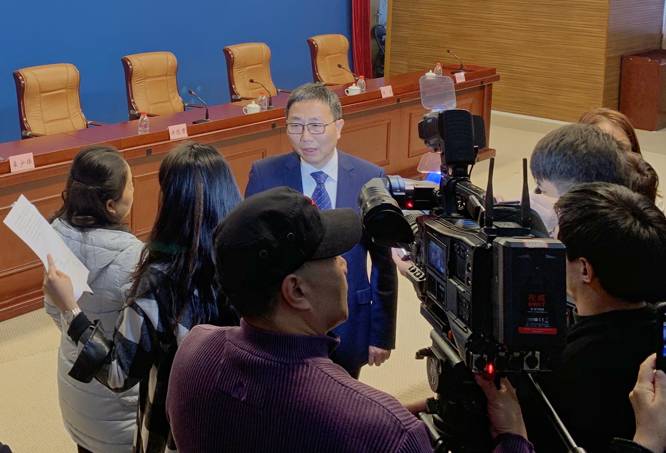 ▲会后,朱鹏立院长接受现场采访