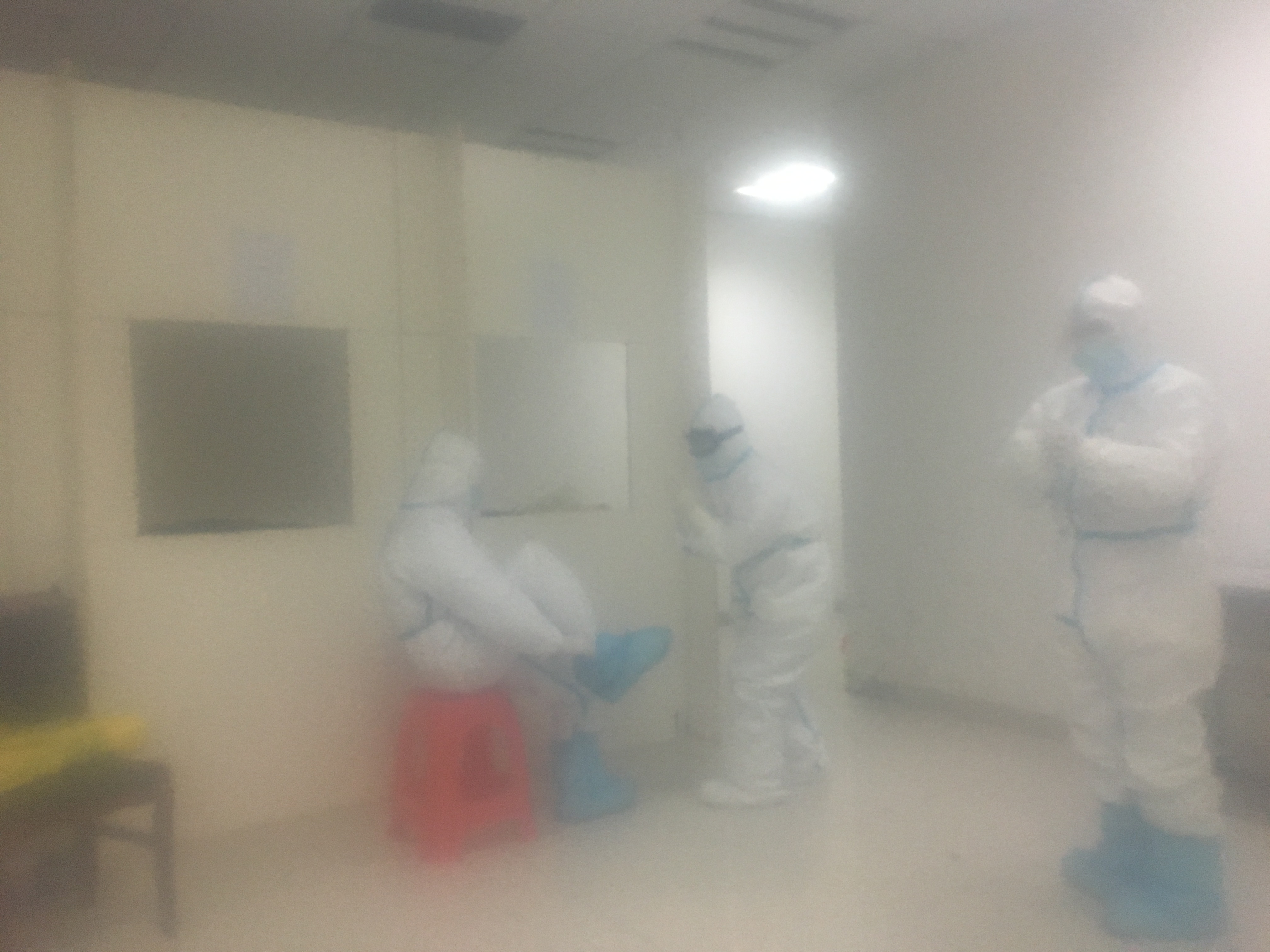 周晓芬介绍,因为防护物资紧缺,无法做到统一品牌、规格。不同型号的防护服穿脱技巧略有不同,大部分进舱的工作人员都没有长期从事传染病防治工作的经验,穿脱防护服对他们而言是一个挑战,更关乎个人是否被传染。在我们的指导下,他们就能顺利的适应混搭各种防护设备。