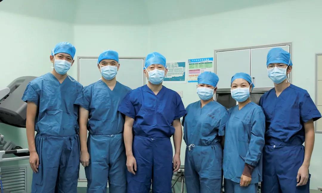 ▲泌尿外科主刀医生叶烈夫主任医师、朱庆国主任医师,助手吴进锋副主任医师、胡敏雄主治医师及手术团队