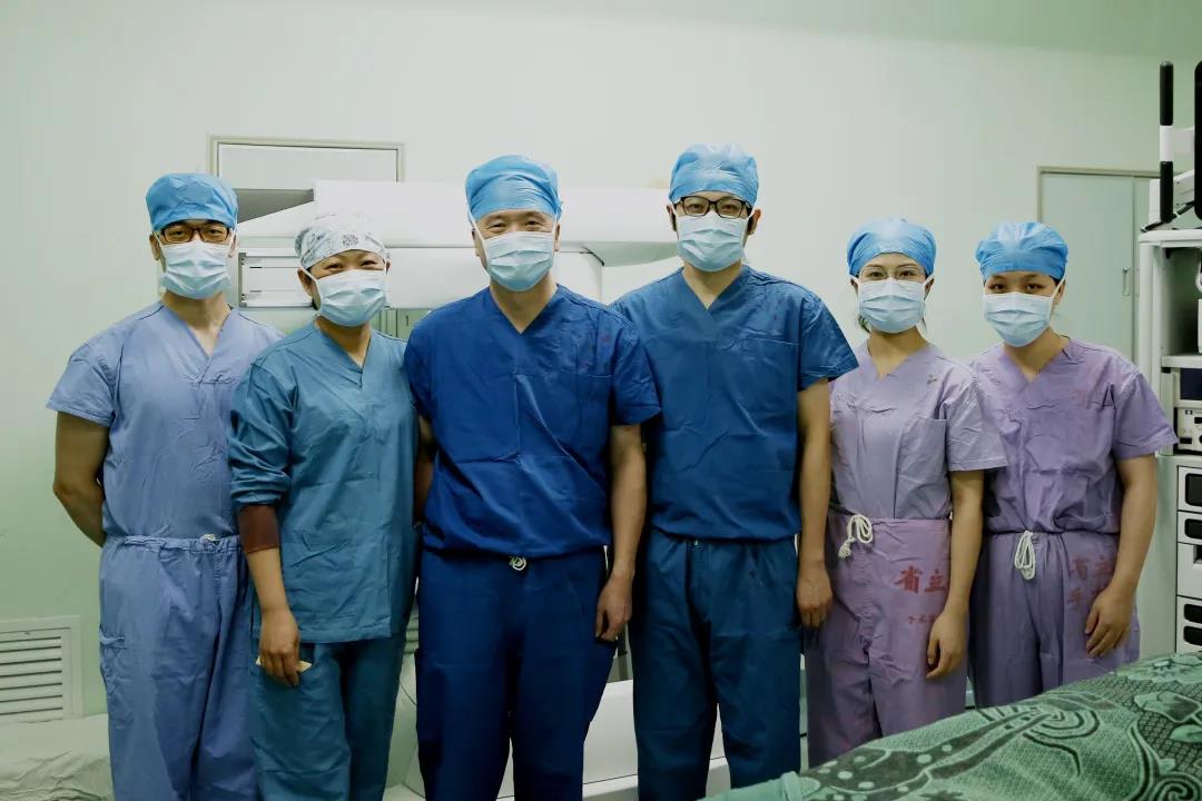 ▲儿外科主刀医生徐迪主任医师、助手何少华主任医师及手术团队