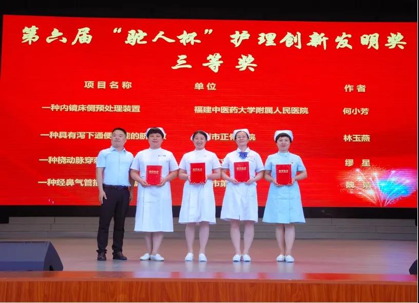 ▲护理部主任陈晓欢(右三)代表护理团队领奖