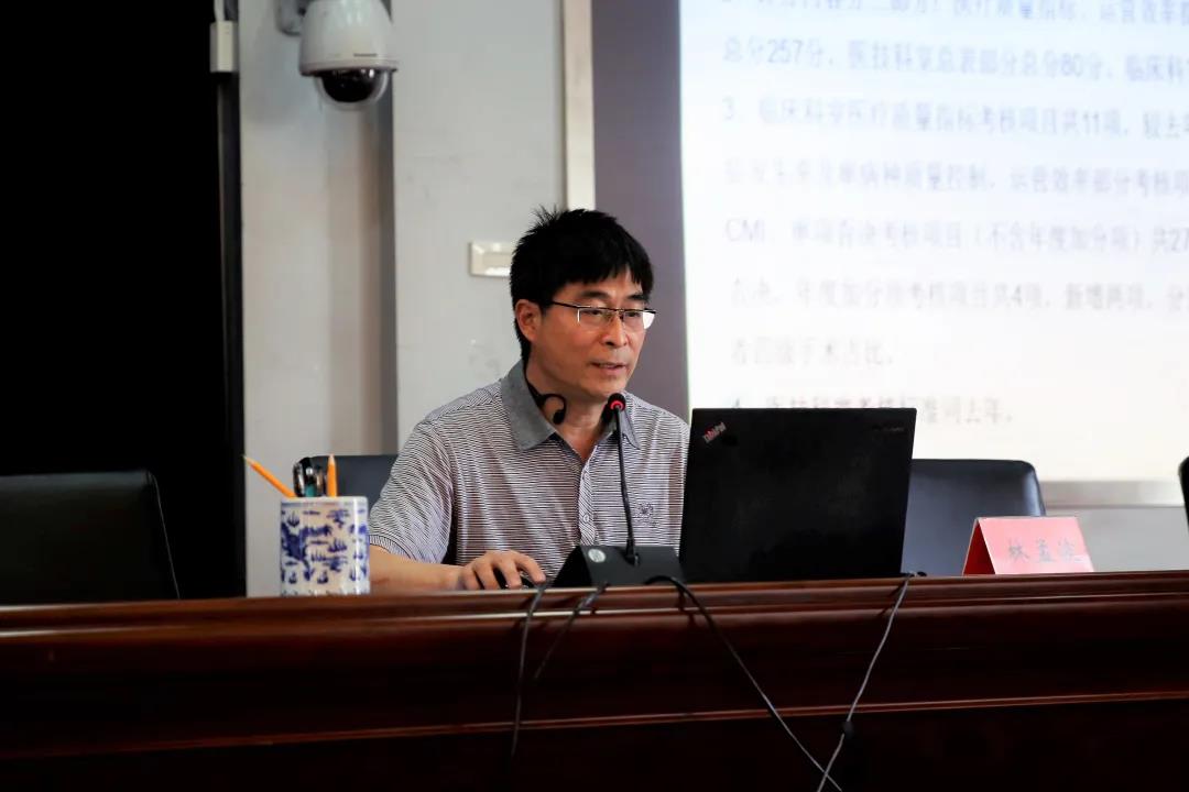 党委书记、院长朱鹏立在会上对院科两级综合目标管理考核工作提出了几点要求:一是高度重视,院科两级综合目标管理考核工作融入了医院对科室工作的要求,各科室主任要深化认识,以考核指标为导向,提升管理水平。二是广泛培训,相关职能部门要在一定范围内对临床科室进行分类指导,加强考核内容培训,加大宣传力度。三是全员投入,全院职工在各科负责人的带领下,全员投入考核工作,了解科室发展的优势、劣势,运用评估系统检验工作成效。四是行政科室积极配合,服务好临床一线,提供及时便捷的考核信息反馈。五是做好考核结果的应用,各科室通过梳理考核体系,明晰工作方向,提升优势,补齐短板,实现长足的发展。