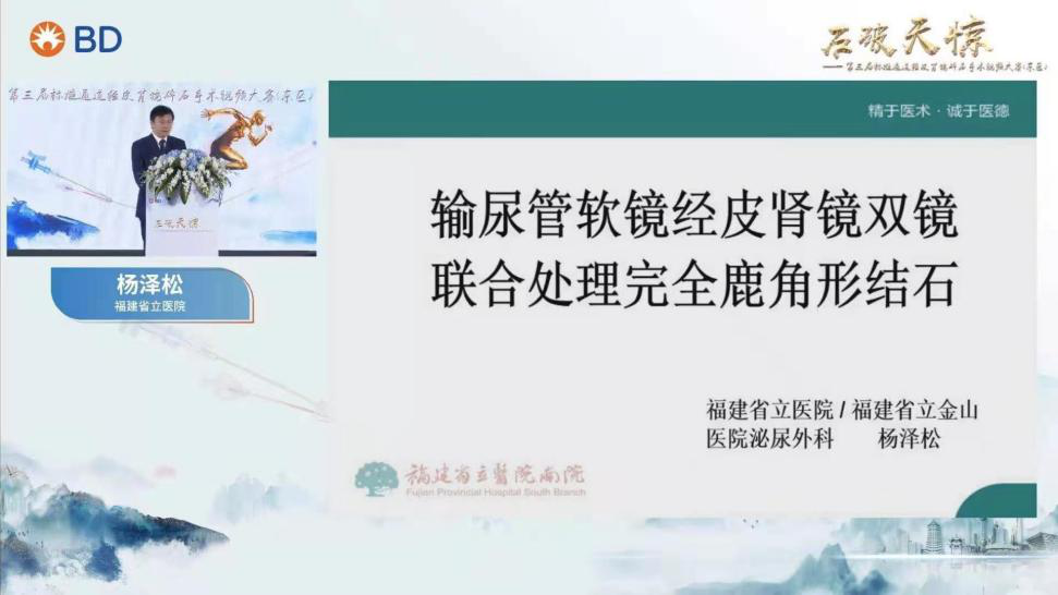 近日,第三届标准通道经皮肾镜碎石手术视频大赛在杭州举行,该赛事云集浙江、江苏、上海、安徽、武汉、福建等地的青年精英同台竞技,特邀国内结石领域的十位顶尖专家及数位青年才俊担任评委,在线上线下同步直播。福建省立金山医院外科(泌尿外科)杨泽松副主任医师以精湛的手术技巧和沉稳的现场发挥斩获冠军——卓越钻石奖,这已是他连续第三年在全国赛事上斩获奖项。
