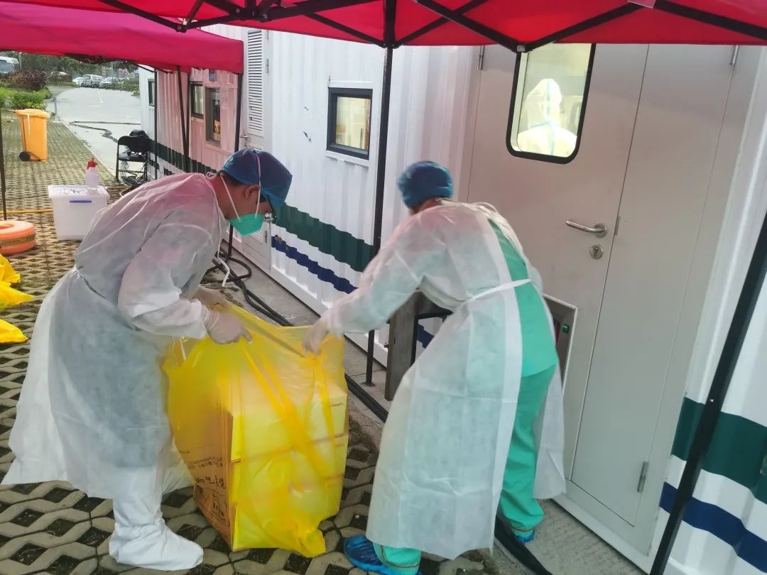 按照福建省卫生健康委的统一部署,福建省立医院、福建省立金山医院核酸检测医疗队由院领导陈锋、郑晓春带领,于9月10日连夜组队,携带P2移动微生物实验室和核酸城市检测基地检测方舱等设备奔赴莆田,开展工作。