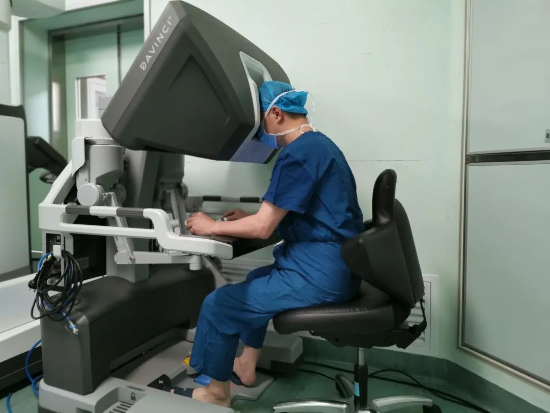 潘小杰主任医师及助手朱立桓主治医师与手术室、麻醉科团队密切配合,通过三个微创的小孔,利用机器人手术机械臂灵活的优势,快速完整切除肿瘤,并规范完成系统性淋巴结清扫。手术过程顺利,用时1.5小时,出血约40ml,术后拔除气管插管后即安返病房。