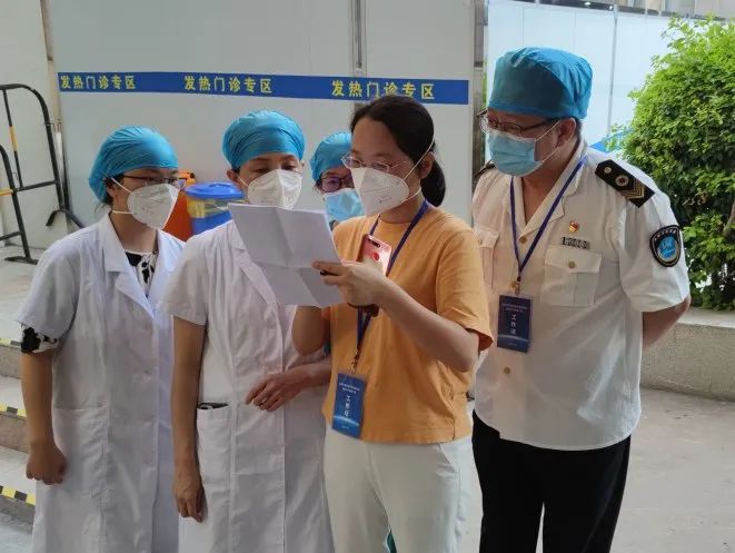 ▲陈玉芳(右二)与院感督导组在厦门大学附属中山医院发热门诊督导