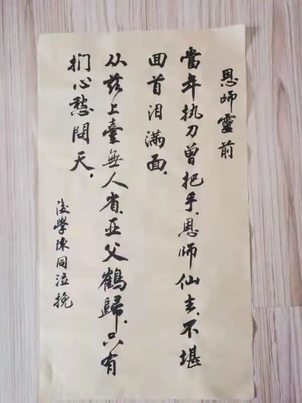 ▲魏北有学生陈同写给老师的悼词