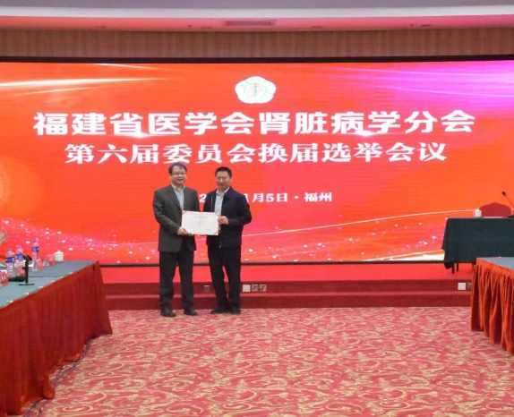 近日,福建省医学会肾脏病学分会第六届委员会换届选举大会在福州召开,会议由福建省医学会秘书长黄纯主持。会上,我院肾内科洪富源主任医师全票当选福建省医学会肾脏病学分会第七届主任委员,血液净化科陈友明副主任医师为常务委员,肾内科吴家斌主任医师为委员,林苗副主任医师、刘卫华副主任医师为秘书。