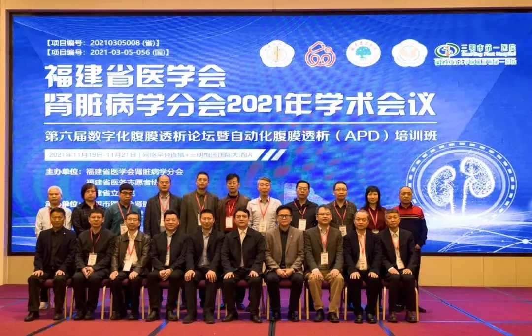 近日,由福建省医学会肾脏病学分会、福建省立医院、三明市第一医院共同主办的“福建省医学会肾脏病学分会学术年会、第六届数字化腹膜透析论坛”在三明市举行,并通过线上形式同步直播。福建省医学会秘书长黄纯,中华医学会肾脏病学分会主任委员陈江华,三明市卫健委党组书记、主任肖世宣,福建省急救中心副主任郑晓春,三明市第一医院党委书记周章彦出席开幕式并致辞。