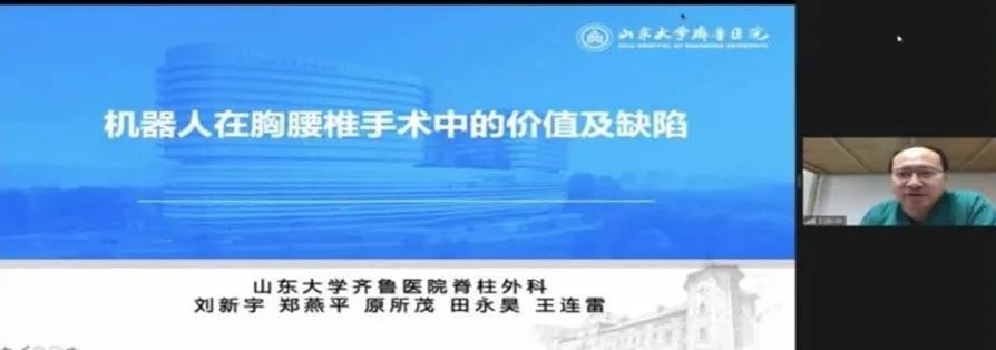 山东大学齐鲁医院刘新宇教授、广东省中医院陈博来教授、江苏省人民医院余利鹏教授、福建医科大学附属第二医院俞海明教授等全国各地脊柱外科机器人辅助应用的专家进行专题分享。