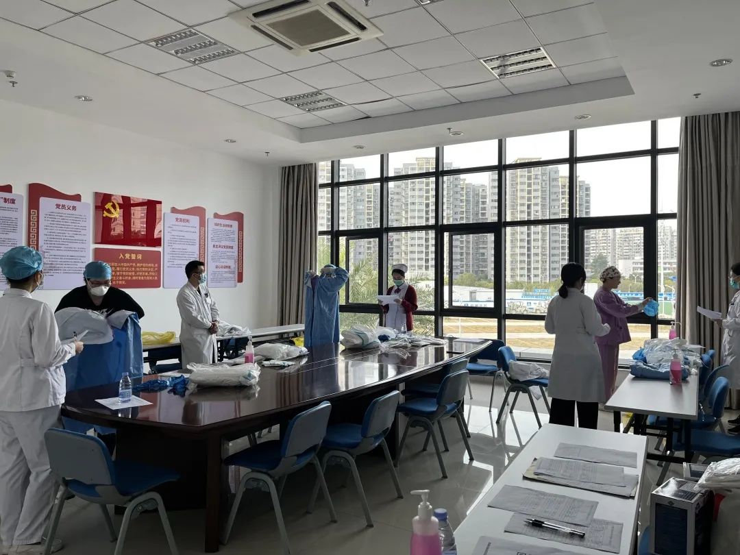 2021年组织培训123场次,累计培训37001人次。今年以来进一步强化感控相关知识与技能的培训与考核。2022年1-3月份已开展线上、线下院感知识培训15298人次,并根据国家《医疗机构内新型冠状病毒感染预防与控制技术指南(第三版)》内容制定详细的技能考核标准,对全体医务人员进行包括隔离衣与防护服在内的全套防护用品穿、脱技能全过程的全员培训与考核,至目前两院区共培训并考核7093人次。对于重点科室或岗位以及全院各科院感监控医师与护士的个人防护用品穿脱技能考核,均一对一地进行,考核合格方可上岗。