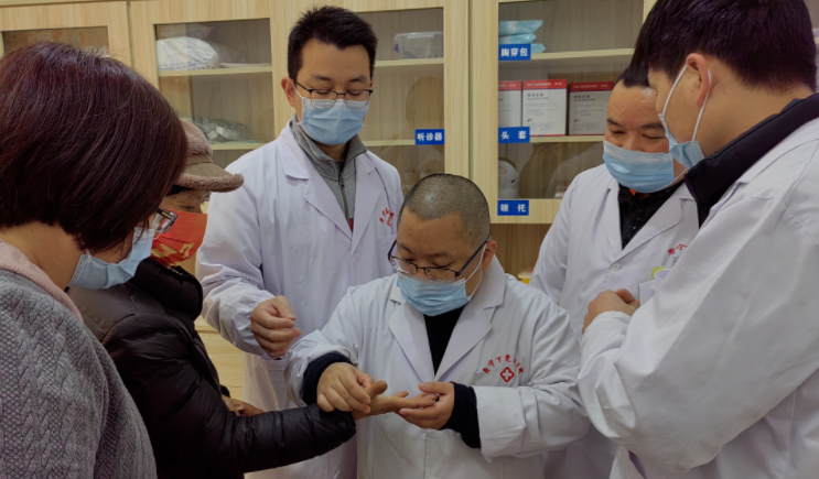 “去好几家医院都说治不了,多亏了省立的专家让我重获新生。”当地茶农王大姐,最近右手拇指关节疼痛时不时发作,“痛起来甚至会掉眼泪”,医疗队队员、我院骨科林克凤主治医师仔细查体后诊断为“狭窄性腱鞘炎”,用通俗易懂的语言向吴大姐解释了病情,并现场进行“腱鞘封闭术”,同时也对卫生院医生进行了现场示教。原本仅是抱着“碰运气”心态吴大姐经过一次治疗就得到了显著缓解。“感谢省立医生给我带来了实实在在的福利。”