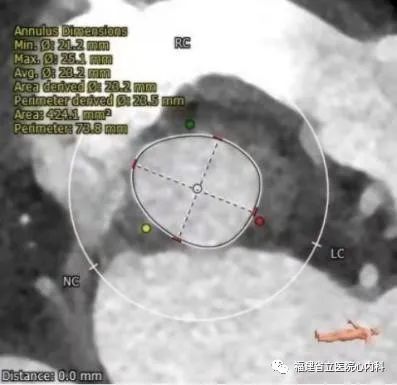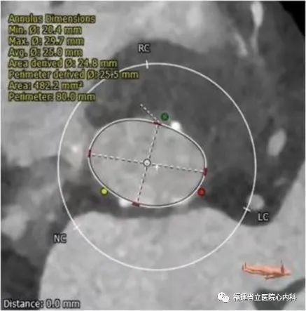 该病例是三叶瓣,中度钙化,法式窦结构可,但是左冠状动脉开口低,左冠瓣瓣叶冗长,预测掀起的瓣叶可能超过冠脉开口上缘,术者在术前通过CT精准评估冠脉风险,制定详尽的介入治疗策略,术中通过25号球囊预扩进一步确认冠脉情况,最后将29号瓣膜精准植入预期位置,避免冠脉风险,达到预期手术效果。