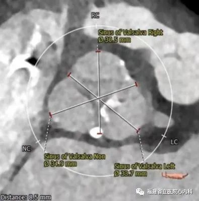 该病例主动脉瓣为功能性二叶瓣,瓣叶增厚且重度钙化,主动脉根部整体结构大需植入最大型号的人工瓣膜,患者升主动脉增宽且为横位心,增加了大瓣膜植入的难度,术者通过术前CT的精准评估,制定了对应的介入治疗策略,最终在术者稳当的控制下,Venus A- L32瓣膜精准地锚定在预期位置,术后患者症状明显改善。