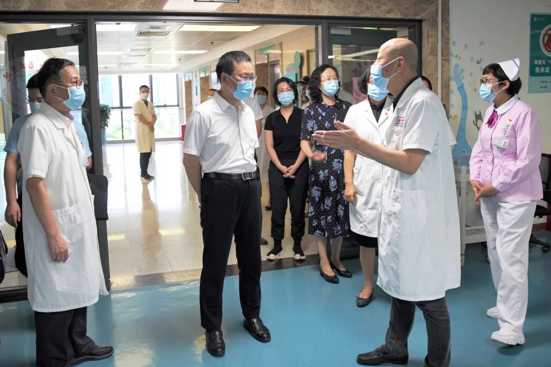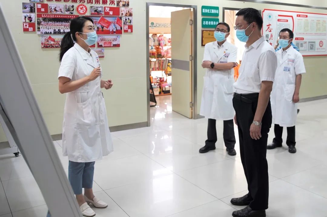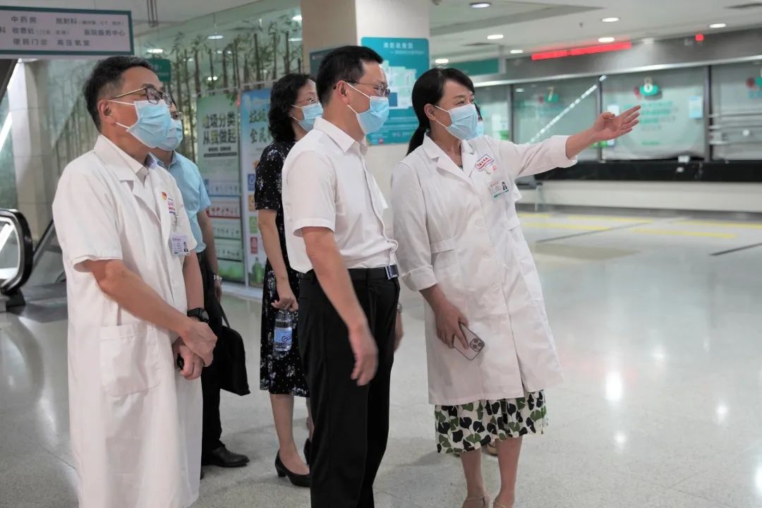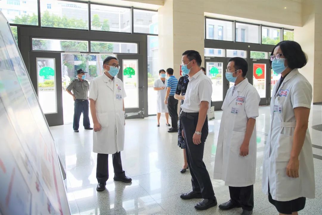 姚建红一行走访了我院临床医学实验研究中心、住院病房、党建文化长廊、医务社工与志愿者服务站、院史馆等地,详细了解医院学科建设、品牌特色、人才队伍、信息化建设和教学科研等高质量发展的情况。他充分肯定了我院在加强公立医院党的建设、高质量医疗服务、高水平科研工作等方面做出的努力和取得的成绩。