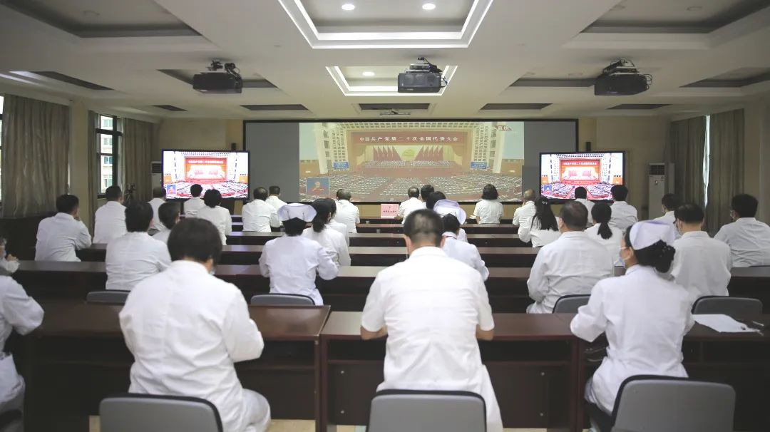 福建省立医院党委把深入学习宣传贯彻党的二十大精神作为当前和今后一个时期的首要政治任务,提前部署学习安排,组织全院干部收听收看大会开幕会实况。医院领导班子、行政职能部门负责人、医护代表在5号楼5层会议室集中收看开幕会,各党支部的党员干部群众分别通过网络、电视等多种形式收听收看大会直播盛况。全院干部职工在第一时间积极学习、热烈讨论党的二十大报告。