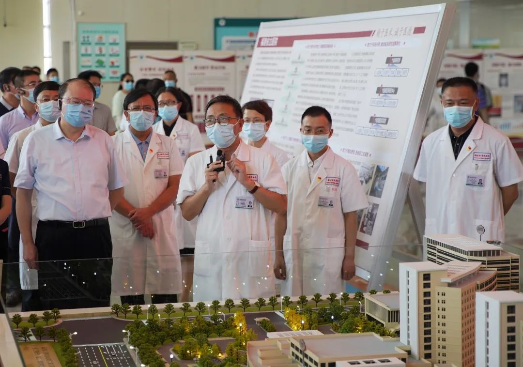 调研组一行实地考察了门诊大楼、住院部病房、医技检查科室、国家紧急医学救援(福建)队等,详细了解公立医院党建工作、医疗“创双高”建设、推进智慧医疗、改善医疗服务、提高精细化管理、金山院区二期工程建设以及医院文化建设等相关方面举措,沿途听取了医院在落实一院多区建设、提升诊疗能力、加快学科建设、加速人才培养、创新医疗服务模式、促进医教研协同发展等方面的工作情况介绍。