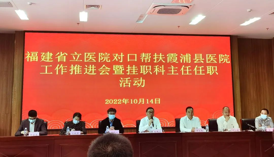 推进会上,举行了霞浦县医院“双主任”任职仪式,我院急诊内科龚峥副主任医师、神经外科洪文瑶副主任医师、检验科陈东杰副主任技师分别受聘相应科室科主任。我院挂职霞浦县医院院长林开阳汇报两院对口帮扶情况。