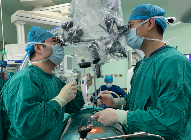 ▲徐杰教授、林院主任医师团队为患者实施手术中