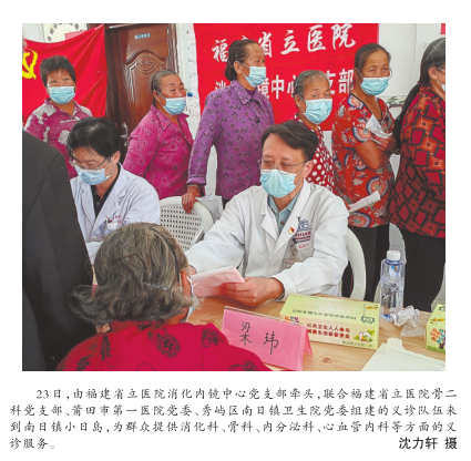 党建引领,夯基惠民。福建省首个针对食管癌规范普查筛查项目是在2019年由福建省立医院、福建医科大学、莆田市政府、福建省食管癌早诊早治促进联盟联合在莆田南日岛开展。四年来,已开展流行病学调查6000余人次,多次举办以“健康海岛义诊”为主题的党日活动,将省市级专家送到海岛居民家门口。不仅切实解决部分海岛居民的健康困扰,更提高了海岛居民的健康意识。