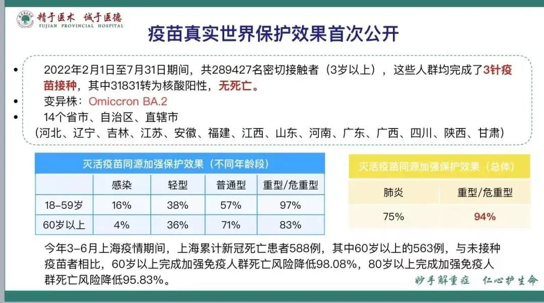 打疫苗可以减少感染、减少重病,降低感染传播几率。国产疫苗请动员老年人放心打,以下图表数据是基于国产灭活疫苗统计,可以参考。