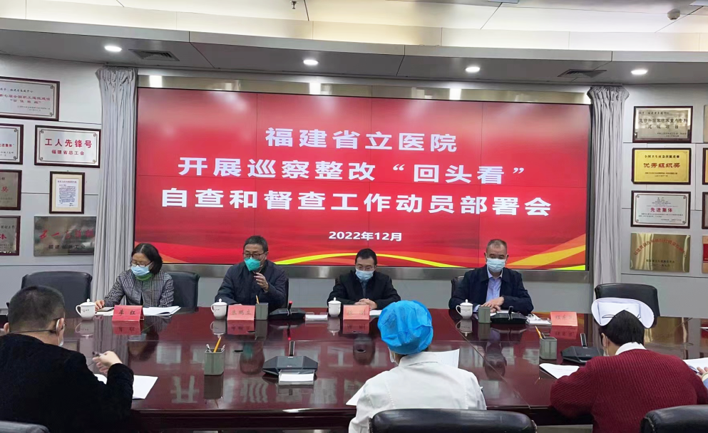 为巩固上一轮巡视巡察整改成果,推动医院全面从严治党主体责任落实,福建省立医院召开巡察整改“回头看”自查和督查工作动员部署会,院领导朱鹏立、陈刚、李红及各相关职能部门负责人参加,会议由纪委书记程东风主持。