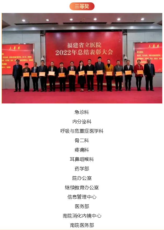 无畏鏖战上海方舱、驱车千里援琼、披甲赴京抗疫、打赢省内攻坚战,守护百姓健康。以患者需求为导向,智慧医院再升级,改善服务再接力,健康科普再惠民,志愿服务再联动。我院团队代表福建省在健康中国行动知行大赛中斩获全国冠军,取得3项中国医院管理奖大奖,患者满意度连续多年名列全省前茅。