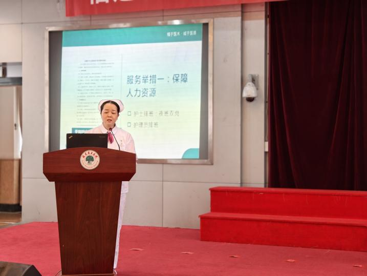 随后,骨一科主管护师李晰作为30年护龄代表发言,来自两院区的三位护士长分别作了优质护理服务经验交流。