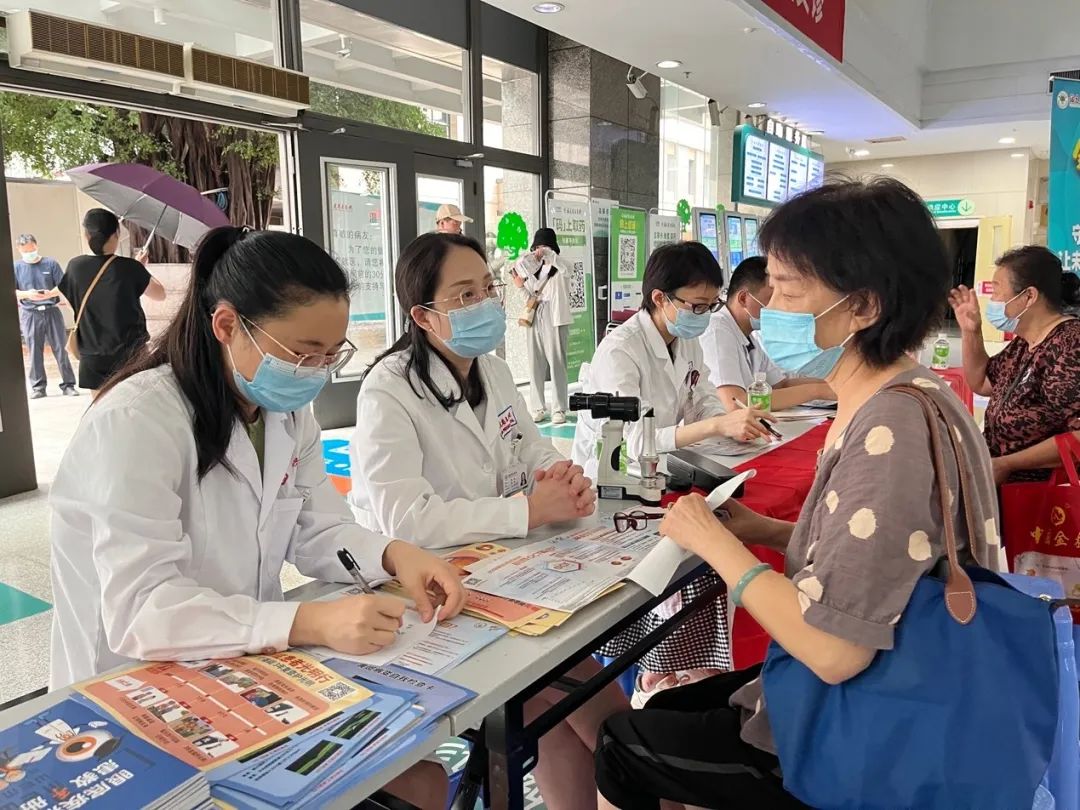 中国医师协会福建省眼科分会副会长、福建省医学会眼科分会白内障学组组长、我院眼科党支部书记饶惠英主任带领专科团队,在医院3号楼门诊大厅举办义诊活动,为患者进行免费的眼前节和眼底检查,科普近视、白内障、老年性黄斑病变等眼科常见病的防治方法。