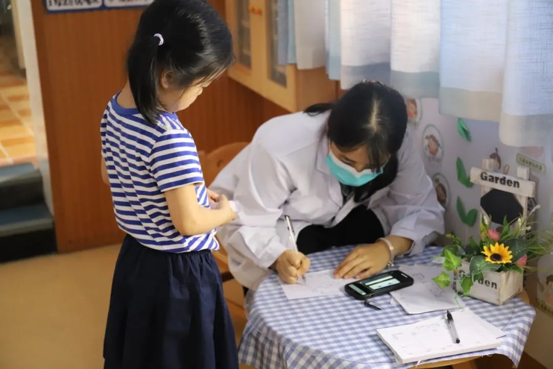 陈晗、洪思缘、林钰雯三位青年医师走进海军幼儿园,参加了儿童医学中心主办的“医路童心,情系军属”大型义诊活动,为近200名小朋友进行视力和屈光检查,并耐心解答家长的咨询。
