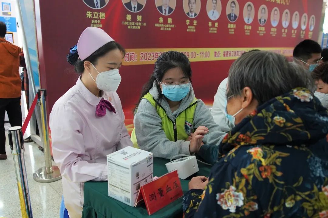 志愿者们热情的为大家提供免费测量血压服务。义诊活动共接待问诊、测量血压、提供诊疗服务300余人次,发放相关宣传资料500余份。