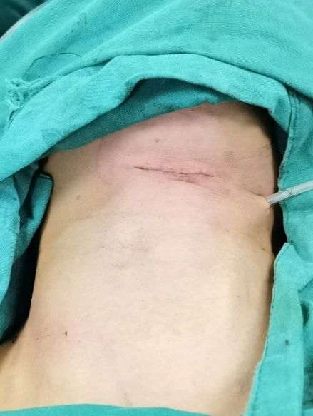 小李就诊甲状腺(疝)外科后,林强主任医师、李华水副主任医师、谢文焌主治医师团队经过交流,了解她对颈部美观的渴望。经过评估,专家团队决定为她开展经颏颈角入路单孔腔镜甲状腺手术(TCMASPET),只需在患者颈部颏颈角(下巴到脖子的转角处)处切开2~3cm,利用先进的内镜技术和特殊手术器械,精准切除甲状腺肿瘤,平时几乎看不见伤口,充分保证她的美丽需求得到满足!