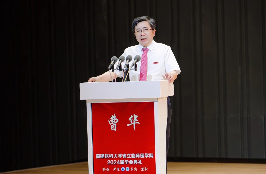 我院党委书记曹华教授向所有毕业生表示热烈的祝贺。回顾过往,福建医科大学和省立临床医学院共同见证了大家从青涩学子到未来医者的蜕变,每一滴汗水、每一次努力,以及家长的辛勤培育与无限期望,都成就了大家的茁壮成长。
