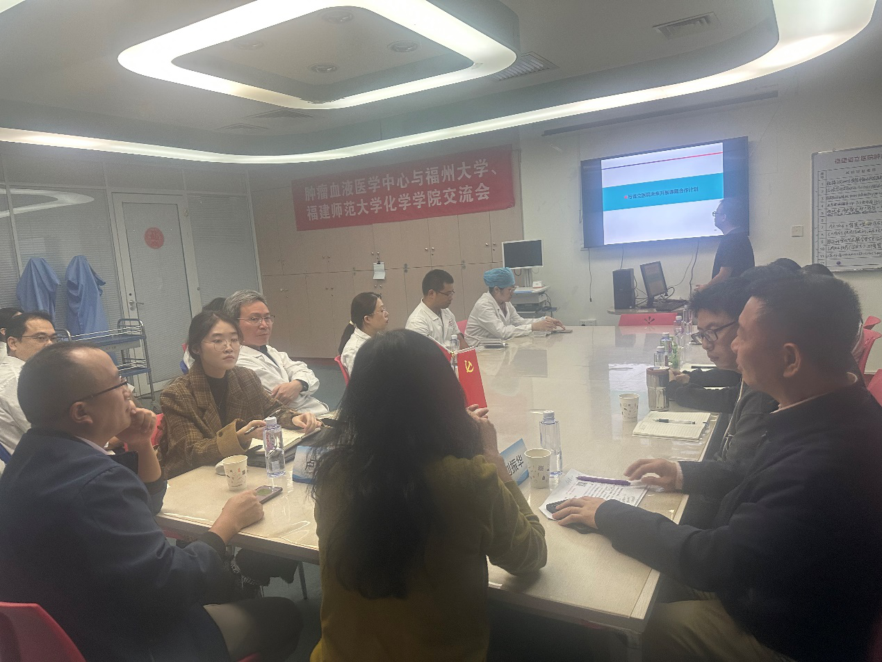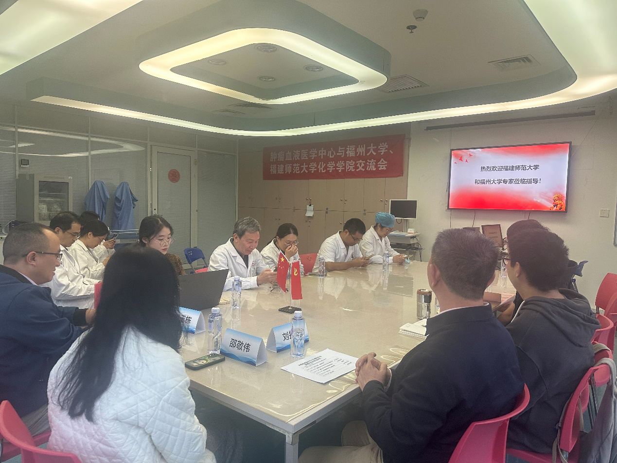 2024年11月18日,肿瘤血液医学中心迎来了一场别开生面的学术座谈会。为深化医工合作,共谋发展,福州大学化学学院的邵敬伟教授与福建师范大学化学与材料学院的卢玉栋教授受邀,与肿瘤血液医学中心的医务人员,开展学术座谈。