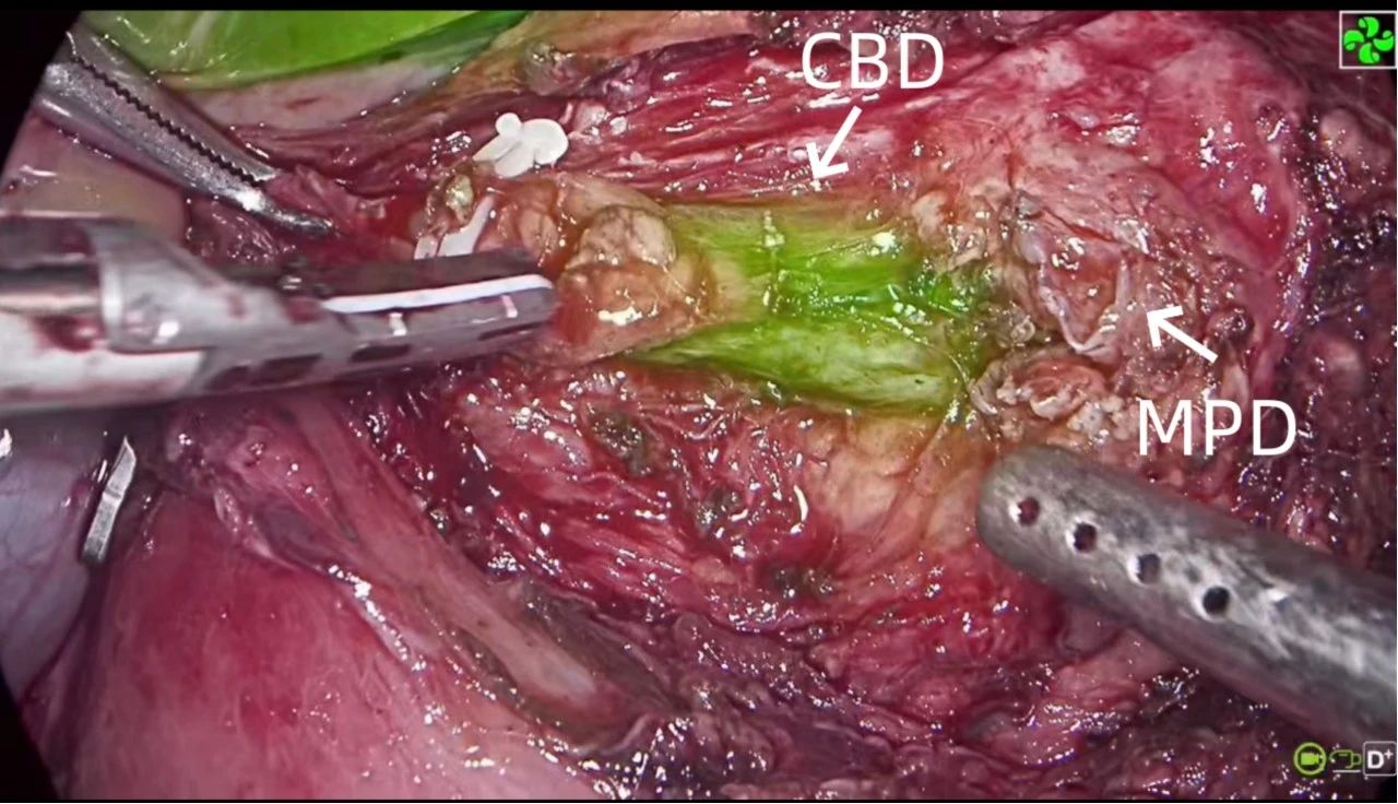 田毅峰教授、陈实教授通过术前充分的评估和规划,利用三维成像和数字分析,智能推演出行胰头切除联合主胰管十二指肠重建的可能性,在术中利用荧光超声导航定位保护胆管,精确切除肿瘤,利用高清放大技术重建2mm胰管,行胰管十二指肠“Takada”吻合,术后恢复良好,实现了真正意义上保留脏器和生理功能的微创。经查阅文献,微创下胰管十二指肠“Takada”吻合在世界范围内尚未见报道。