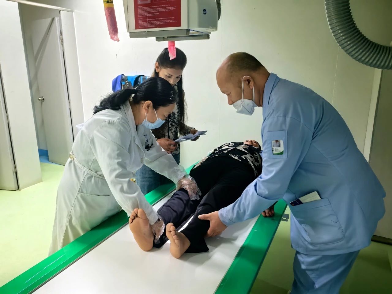 在骨科、放射科、影像科等多科室的配合下,医护人员、护理员与志愿者协作,患者迅速、顺利完成入院手续以及术前检查等一系列术前准备。