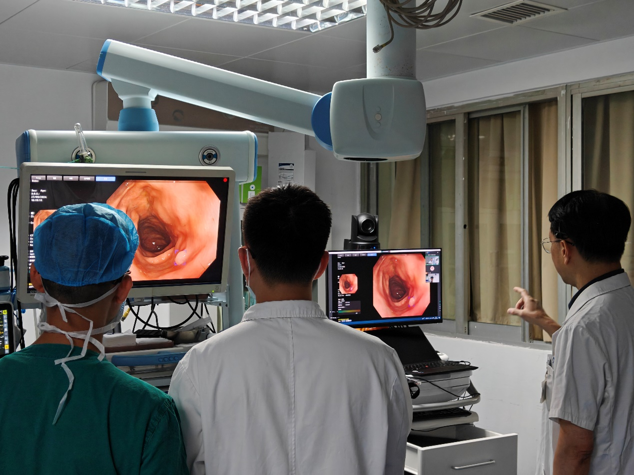 该系统是由我院消化内镜中心与厦门影诺医疗科技有限公司合作研发。基于人工智能技术,实时读取消化内镜中的影像信息,提取影像信息中的特征,进行逐帧分析,分析结果覆盖疾病的检测,诊断,治疗和质量控制多个环节。该系统的研究和应用,相当于一个顶尖的内镜专家在实时指导内镜检查操作,能自动识别监测胃肠镜检查盲区病灶,帮助基层医生做出更精准的判断、减少病灶遗漏;提高消化道早癌检出率。该项目的实施预计将显著提高胃肠道肿瘤的早期诊断率,提升胃肠道肿瘤治疗期的TNM分期率,为后续肿瘤精准治疗提供依据。