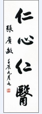 省领导张广敏慰问老劳模题词“仁心仁医”